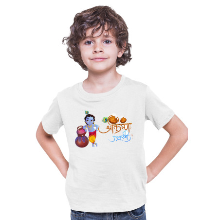 • Polyester Hare Krishna Janamashtmi Tshirts for Kids D15