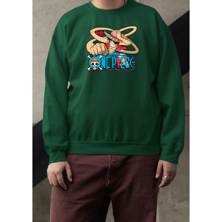 Anime Lovers Custom Print Cotton Fleece Sweatshirt - Full Sleeves Dark Green One Piece D-1