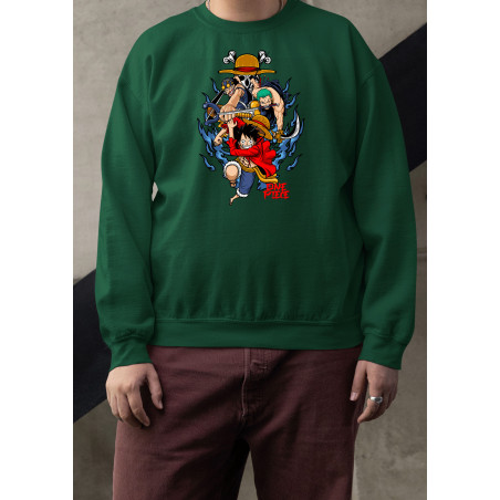 Anime Lovers Custom Print Cotton Fleece Sweatshirt - Full Sleeves Dark Green One Piece  D-6