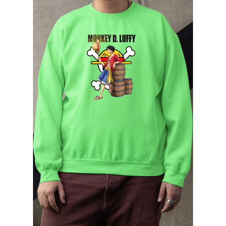 Anime Lovers Custom Print Cotton Fleece Sweatshirt Light Green- Full Sleeves Monkey D Luffy D-5