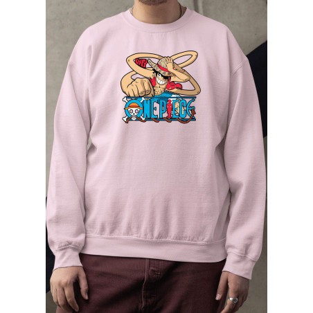 Anime Lovers Custom Print Cotton Fleece Sweatshirt Pink - Full Sleeves One Piece D-3